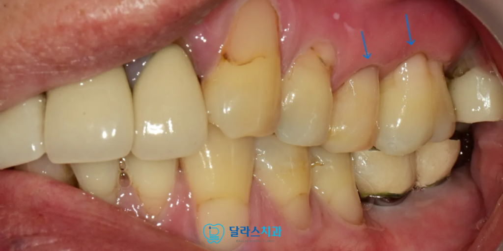 검진 결과 여러 부위에서 치경부 마모증이 확인되는 상황이었습니다.