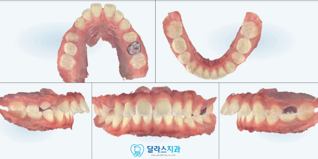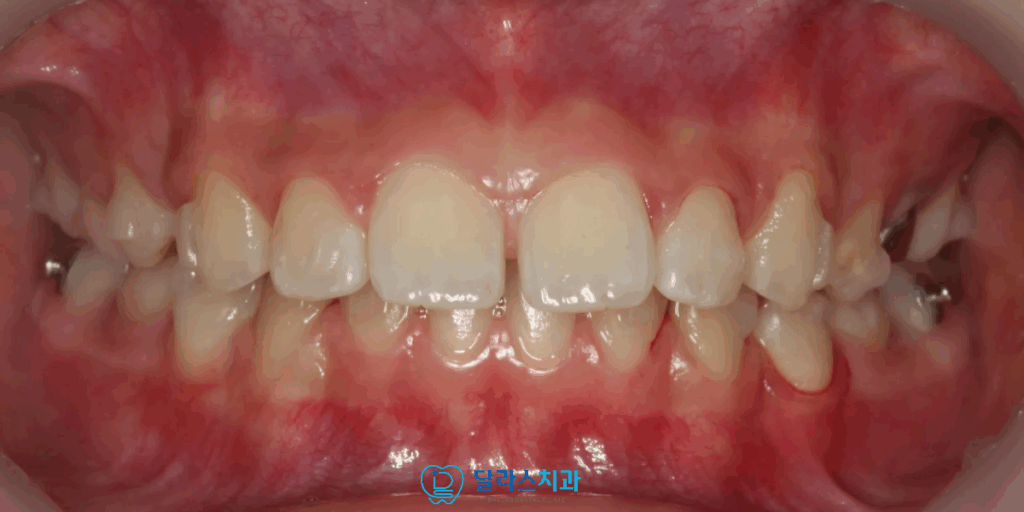 노원치과에서 교정을 진행하는 동안 유치가 빠지고 영구치가 모두 맹출되었으나