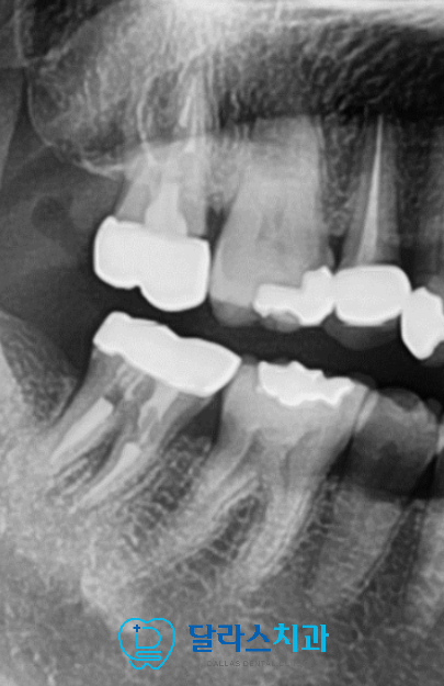 x-ray검사 결과 해당 치아 주변 뼈가 심하게 파괴되어 있었습니다.