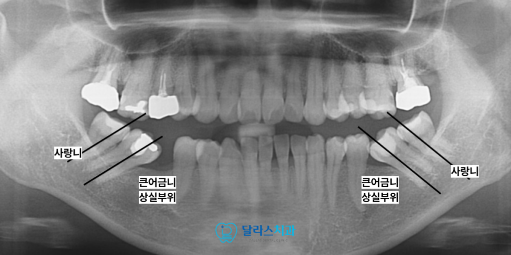 노원치과 환자분께서는 아래 양쪽의 첫 번째 큰어금니 치아를 상실하신 이후