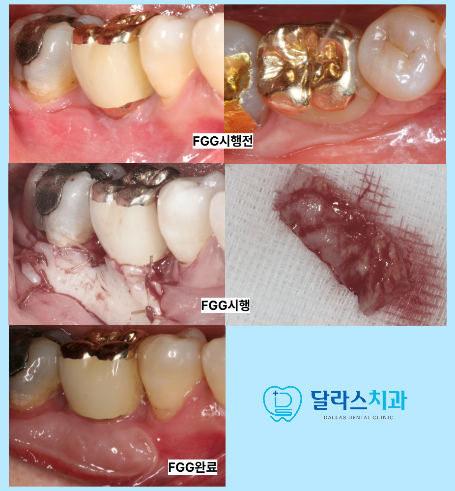 임플란트 주변에 옮겨 심는 유리치은이식술(FGG)을 시행한 것입니다.