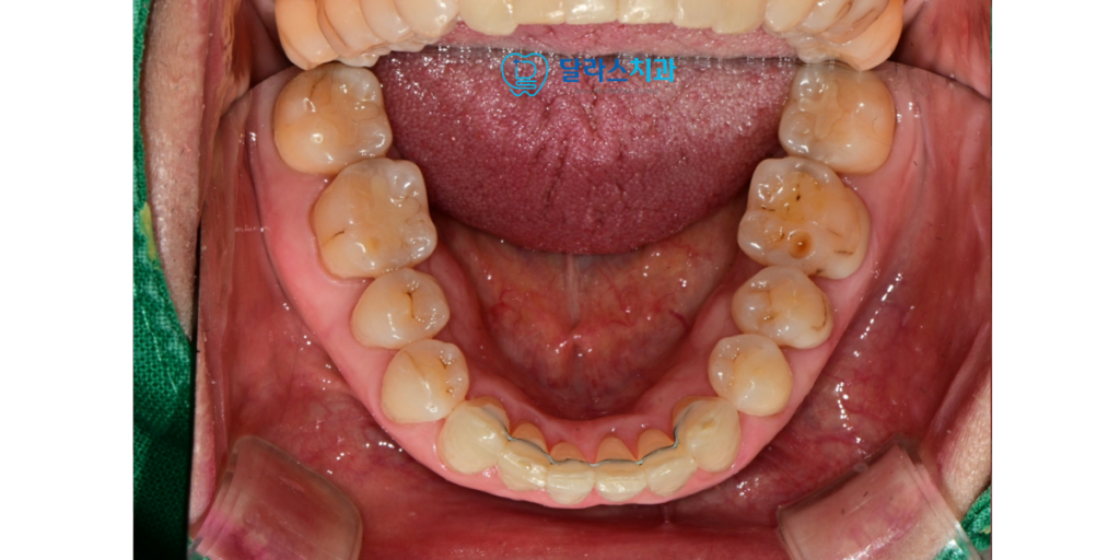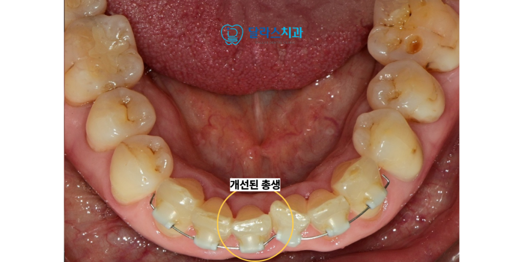 검진 결과 하악 앞니 부위에 전형적인 치열 겹침 현상이 진행되고 있었으며