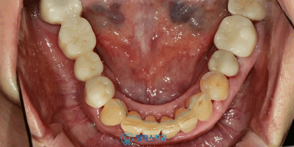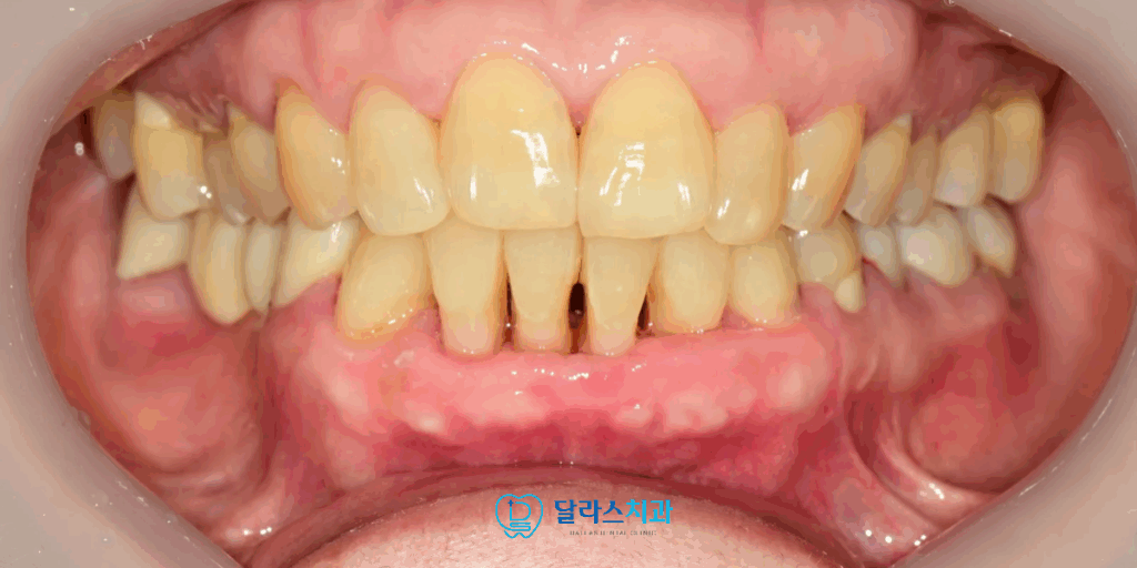 원 당시 하악 전치부 잇몸이 붉고 부어 있으며,