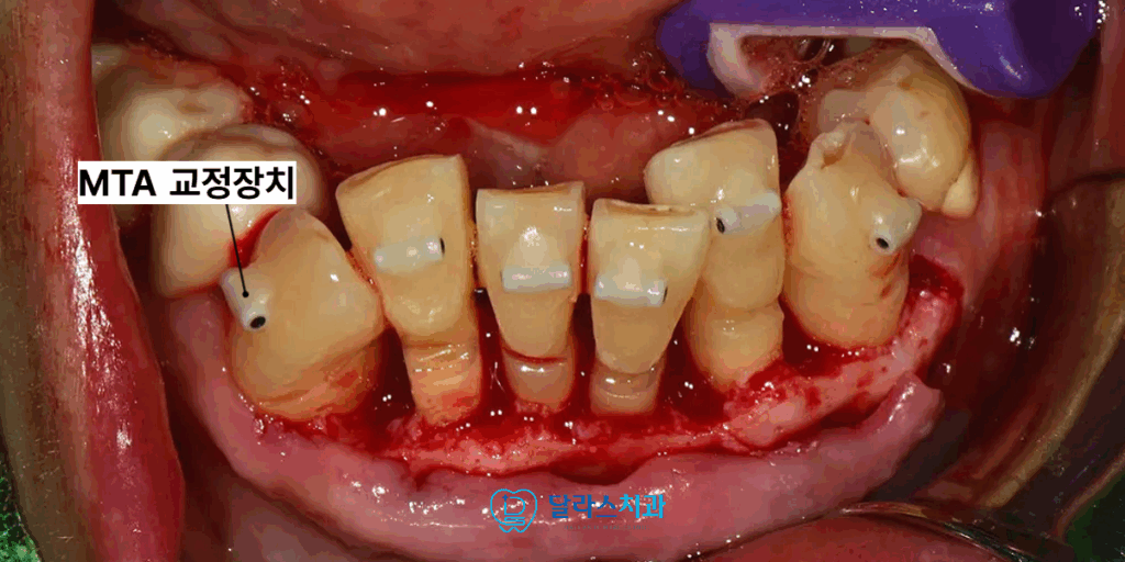 이후 MTA 장치를 사용해 6개월간 아주 미세한 교정력을 주어 치아 배열을 조정하였고