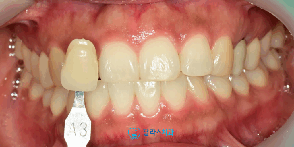 미백 전 치아의 색상은 가이드상에서 A3에 해당되었습니다.