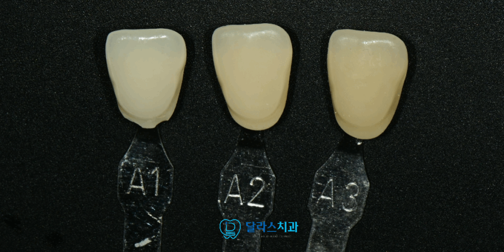 치아의 색상을 표현한 가이드를 통해서 현재 치아의 색상을 파악해 보았습니다.